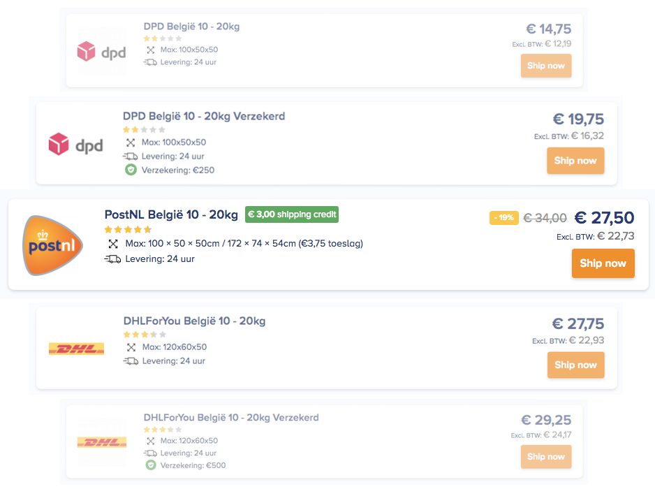 Online uw pakket versturen tegen het laagste tarief, doet u op deze manier. Aan de hand van het gewicht van uw pakket en bestemming geeft GoedkoopPakket u direct de verzendkosten aan van het pakket. Hierbij krijgt u een duidelijke vergelijking tussen alle pakketdiensten die uw pakket goedkoop versturen. Gaat u voor betrouwbaarheid, kosten van de zending of snelheid?