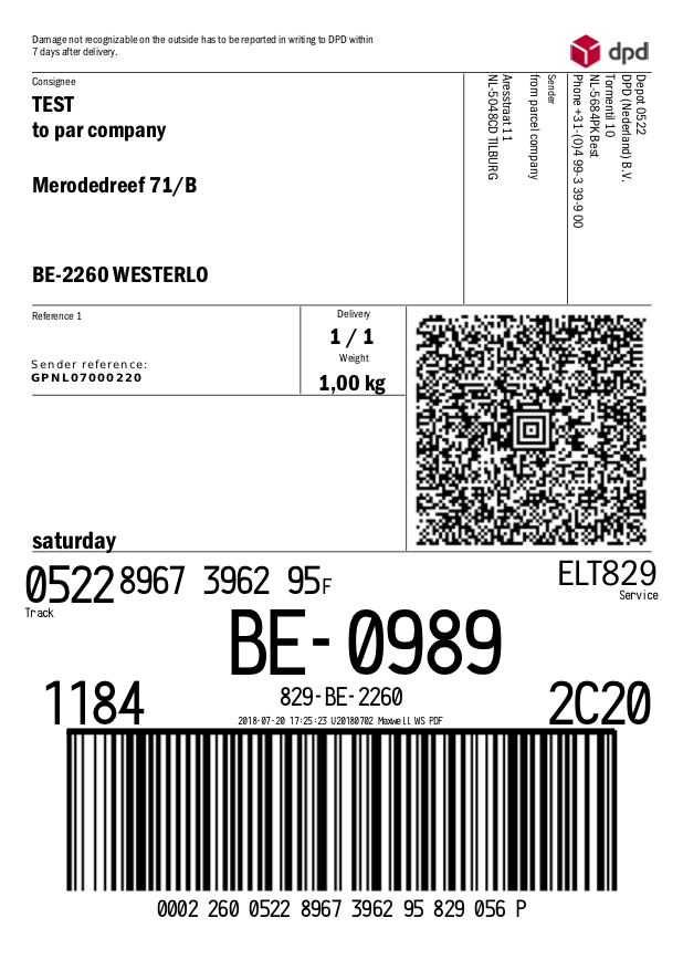 Na het afrekenen ontvangt u uw pakketzegel in uw e-mail inbox en kunt u direct de pakketzegel downloaden op uw mobiele telefoon, tablet of desktop. Ook ontvangt u alle Track&Trace gegevens en BTW-factuur in per email. Vervolgens hoeft u enkel nog maar de pakketzegel op uw pakket te plakken en kunt u deze inleveren bij een pakketpunt bij u in de buurt.